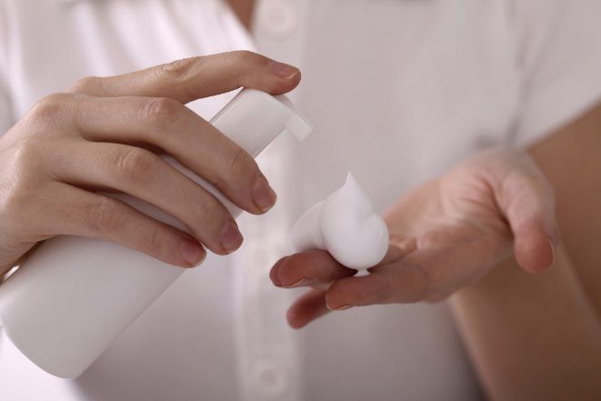 Pump three times, spread the foam over your entire face, and leave it on for 10 seconds. Use a light rolling motion to cleanse oily areas such as your nose and chin.